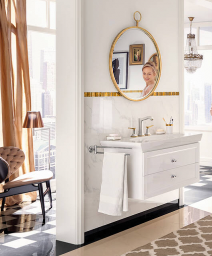 - Tegels: marmeren tegels zijn bij deze stijl erg populair vanwege hun tijdloze uitstraling. Maar ook wandtegels met patronen, mozaïeken en sierranden zijn steeds populairder bij klassieke badkamers.